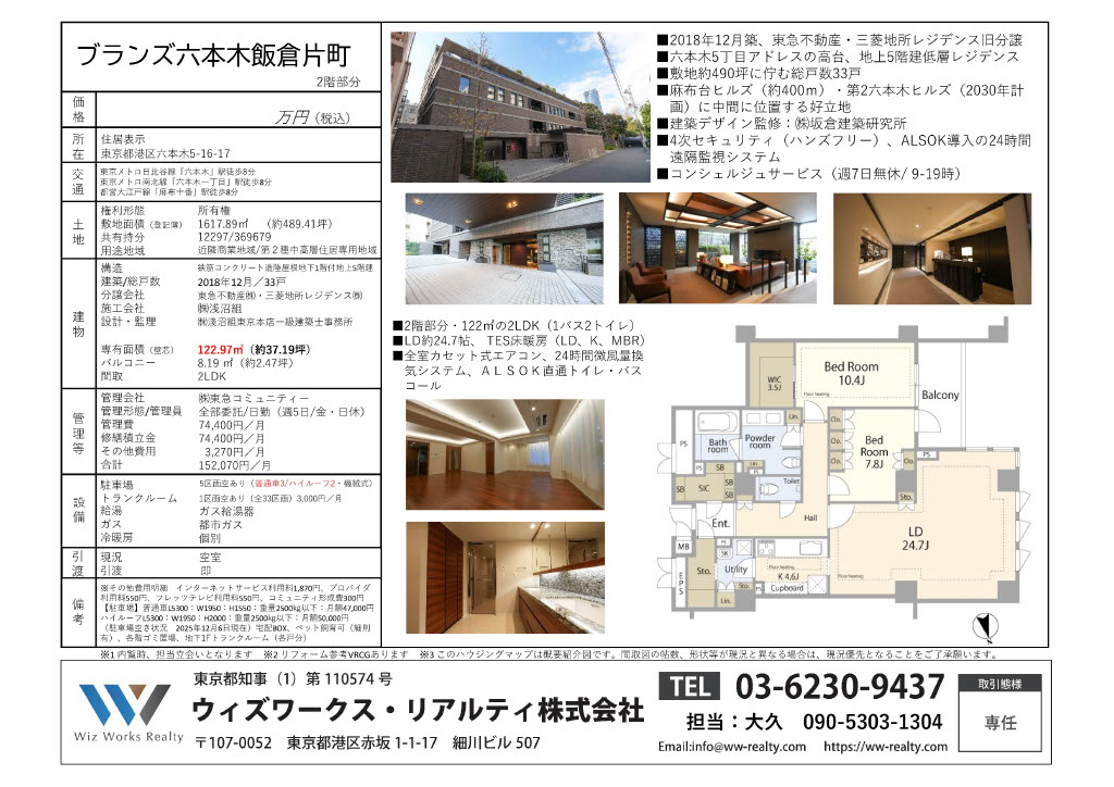 おかげさまでブランズ六本木飯倉片町は成約となりました。